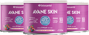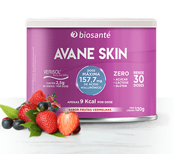 O Colágeno Avane Skin da Biosanté com Verisol e ácido hialurônico combate o envelhecimento da pele e ajuda no tratamento de rugas, crescimento rápido de cabelo e unhas fortes e combate à celulite.