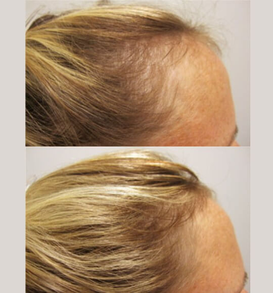 Cabelos mais resistentes à quebra e com crescimento acelerado devido ao aumento da espessura dos fios e proliferação das células foliculares.